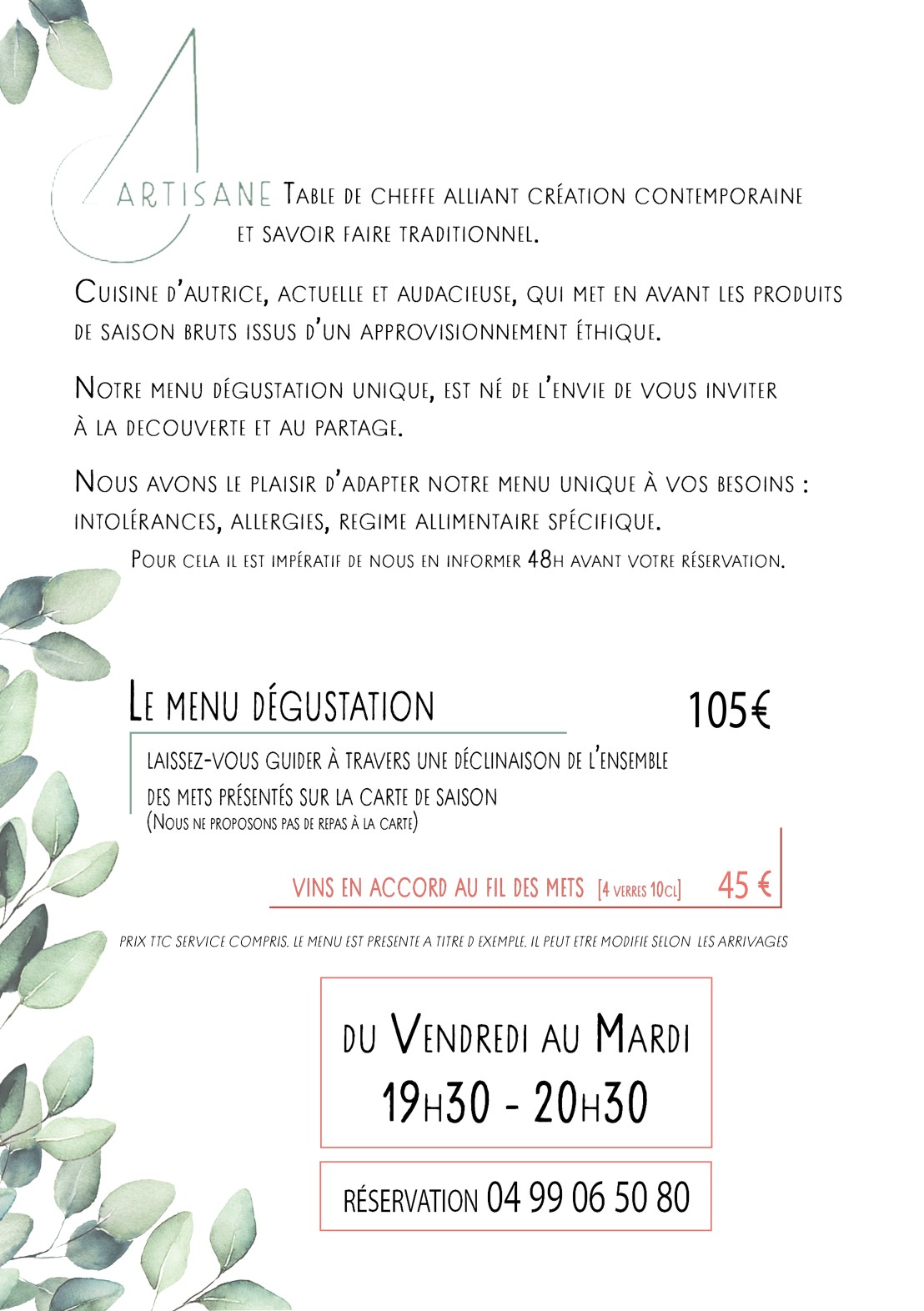* Merci de nous signaler vos restrictions alimentaires à la réservation
